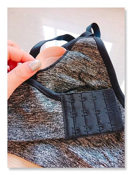 加拿大設計,台灣製造,內部也有加胸墊能自由更換,這款本身就很挺,穿起來包覆性也很高,內衣採三排扣,不怕運動時會鬆開。