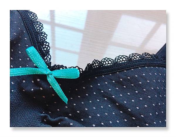 有超可愛的蕾絲邊邊,而且很舒適完全不刺,我之所以以前從不買蕾絲款內衣就是超怕穿了很不舒服,但繽紛點點這件真的完全無感。