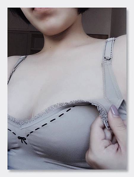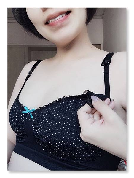 32週實穿照,一樣單手就可以輕鬆扳扣餵奶。蕾絲部分是不是穿oversize的上衣再露出都非常可愛!