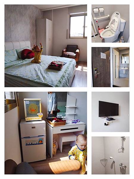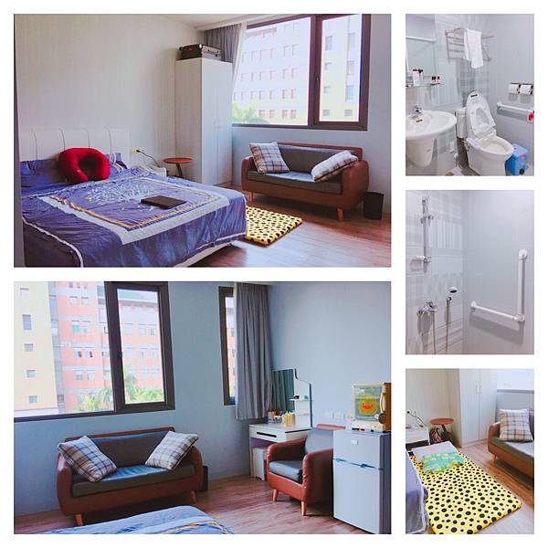這是第一天我們本來該入住的房型,最基本款3000元的,其實我已經很滿意內部的空間,不小也該有的都有,包括每層樓都有飲水機,每間房則有殺菌箱、冰箱、電視、免治馬桶跟乾濕分離的廁所等等的如圖所示,但這裡的主任看到我帶兩個拖油瓶?疑不是啦,就帶了先森跟Kaan一起來做月子,於是乎就被升級到更大的房間去。